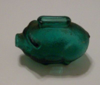 VINTAGE Depression Glass Emerald Green Piggy Bank 4" lg