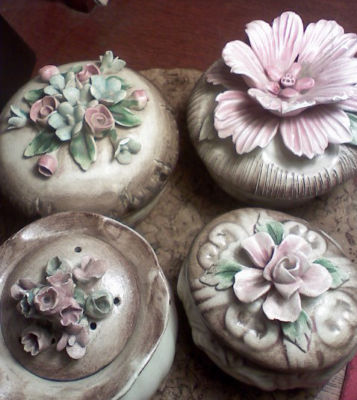 Title (ebay affiliate link): VINTAGE CAPODIMONTE FLOWER TRINKET BOXES 4 BOXES BEAUTIFUL HANDPAINTED