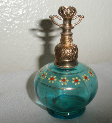Title (ebay affiliate link): Antique Shaker Top Loving Cup BlueRibbed Glass Enameled Perfume Bottle