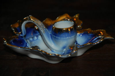 Beautiful blue & gold porcelain Ink well or ashtray