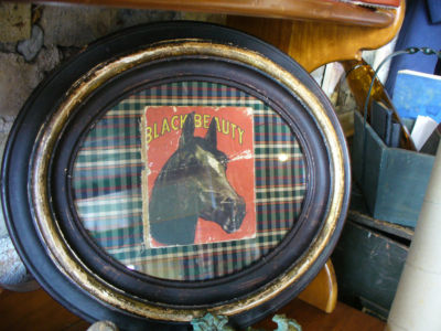 Title (ebay affiliate link): Antique Oval frame of black and gold with antique Black Beauty book cover art