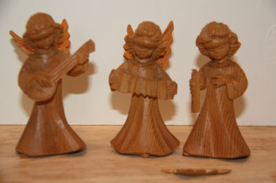 Title (ebay affiliate link): 3 wooden hand carved Vintage ANGELS Luzern Switzerland Schmoker banjo accordian