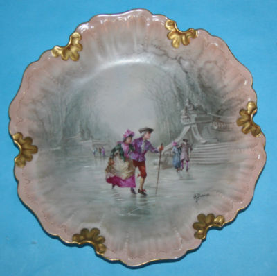 Title (ebay affiliate link): France 1891 Hand Painted Artist Signed Ice Skating Scene Porcelain Plate