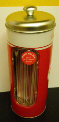 Title (ebay affiliate link): Coca Cola Drinking Straw Canister with 50 straws, embossed tin, Coke Licensed