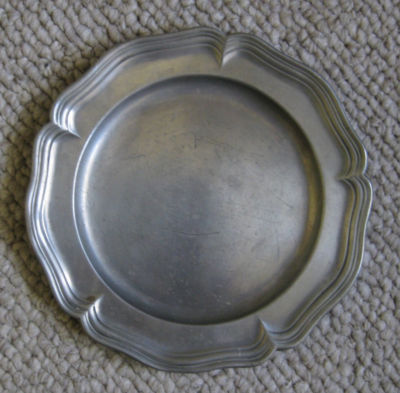Antique German 6†diam Pewter Plate, Mark: Lady, Scales, Deer