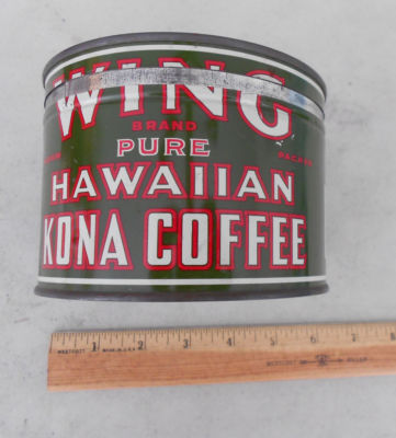 Title (ebay affiliate link): 1 LB CAN Wing Coffee Company Pure Hawaiian Kona Coffee [EMPTY CAN]