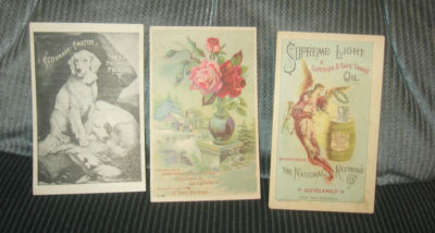 3-C1890 TRADE CARDS- OILS-ELDORADO CASTOR-SUPREME LIGHT-OLD SCOTCH AXLE GREASE