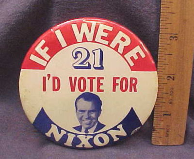 Title (ebay affiliate link): NIXON LARGE IF I WERE 21 I'D VOTE FOR NIXON OLD BUTTON