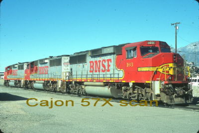 Original slide- BNSF GP60M #103 & All Red/Silver Lashup