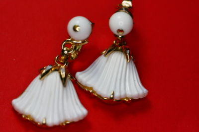 Vintage Valuable and Rare Crown Trifari DES PAT PEND Milkglass Clip Earrings