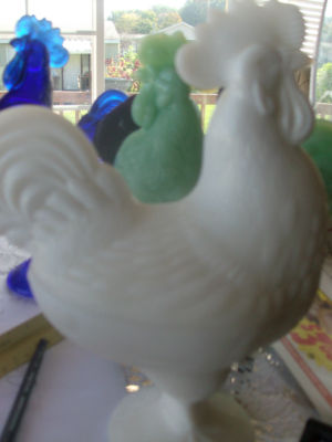 White Milk Glass~~ Carnival Glass~~2 Piece Rooster Dish~~Outstanding Color