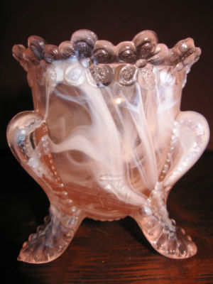 DEPRESSION PINK MILK SLAG ART GLASS TOOTHPICK HOLDER FLOWERS MATCH FLORAL WHITE