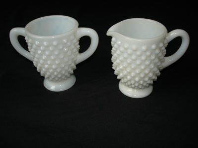 Fenton - Hobnail White Milk Glass - Sugar and Creamer