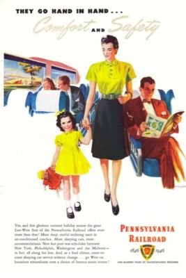 Title (ebay affiliate link): 1946 Pennsylvania Railroad Comfort and Safety - Mother and Daughter on train Ad