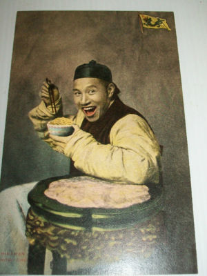 Title (ebay affiliate link): Antique tinted postcard of Chinese man eating noodles,unused,EC