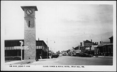 Old Postcard - Clock Tower & Royal Hotel, Swan Hill, Vic.