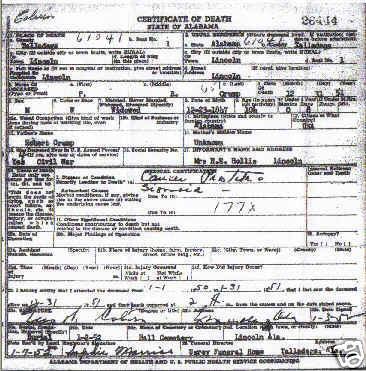 Last Confederate Survivor DEATH CERTIFICATE, Pleasant Crump, Civil War,Died 1951