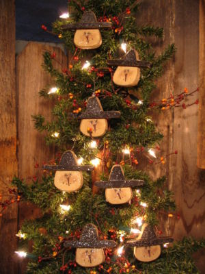 Title (ebay affiliate link): 7 Glitter Wood SNOWMEN with Hats ~ Primitive Christmas Tree Ornies OOAK !!!