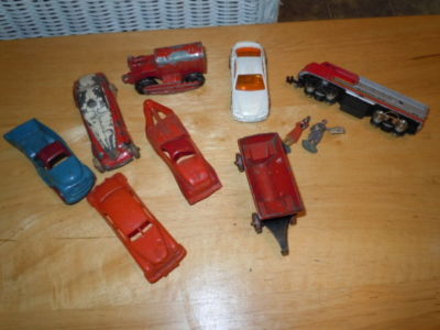 Title (ebay affiliate link): LARGE LOT OLD METAL PLASTIC TOOTSIE MANOIL ETC CARS + N GAUGE SANTE FE ENGINE