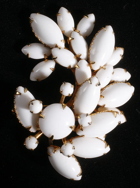FRESH VINTAGE MILK GLASS RHINESTONE BROOCH PIN NR