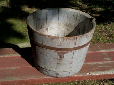 Title (ebay affiliate link): AAFA PRIMITIVE WOODEN MILKBLUE SAP BUCKET VERMONT TYPE