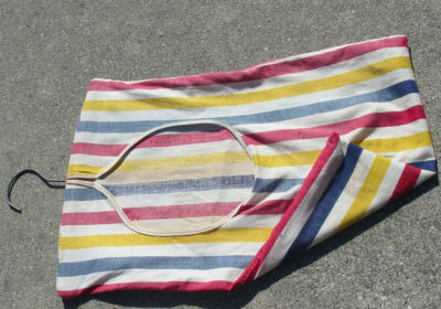 Title (ebay affiliate link): Vintage Old Cotton Clothespin Bag Holder Laundry Caddy Retro Striped