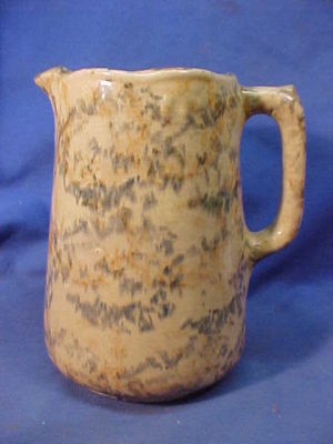 19thc YELLOWARE Brown + Blue SPONGEWARE Decorated 7" PITCHER