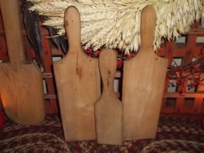Title (ebay affiliate link): COLLECTION OF 3 ANTIQUE WOODEN MAPLE BUTTER PADDLES
