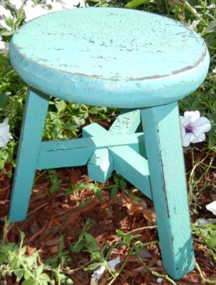 Title (ebay affiliate link): Wood Milk Stool ROUND Wooden Milking Bench, TURQUOISE