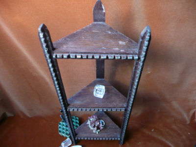 Title (ebay affiliate link): Antique Folk /Tramp Art Hand Carved 3 Tier Corner Knick Knack What Not Shelf