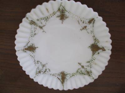 MILK GLASS PLATE ,KEMPLE, BEAUTIFUL DESIGNS & GOLD GILD