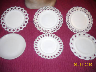 6 Vintage Milk Glass Plates Mixed Lot Some Irradecent
