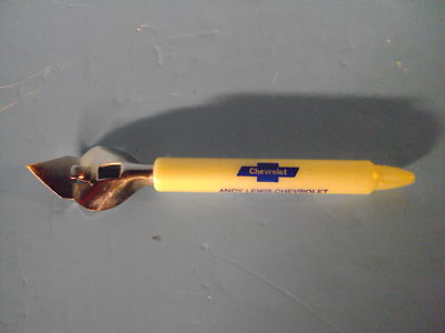 Title (ebay affiliate link): Vintage Nice Original Blue Bowtie Chevrolet Dealer Can Bottle Opener Promo