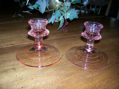 Title (ebay affiliate link): Pair of Vintage Pink Depression Glass Candle Holders