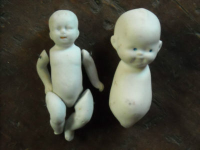 Antique / Vintage ALL BISQUE DOLL, parts - Germany, Lot of 2