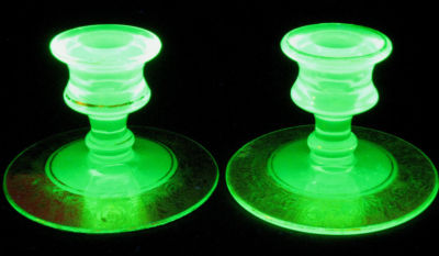 Title (ebay affiliate link): Vintage Green Vaseline Depression Glass Fostoria? Floral Etch Candlesticks 2