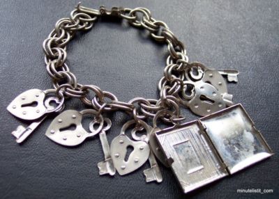 Title (ebay affiliate link): Vintage Bracelet CHARM Book Lock Key Silver Tone Chain Link !