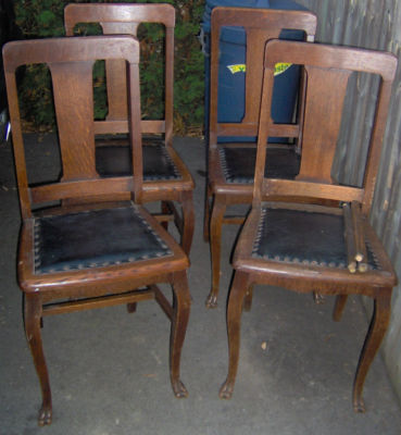 Title (ebay affiliate link): 4 Antique Oak Dining Chairs Lion Claw Feet Tacked seats Canvas Strap Bottoms