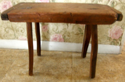 Title (ebay affiliate link): EARLY HANDMADE PINE MILKING PLANK STOOL MORTISED/ BREADBOARD ENDS
