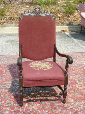 Title (ebay affiliate link): ANTIQUE FRENCH VICTORIAN NEEDLEPOINT THRONE ARMCHAIR NO RESERVE SALE