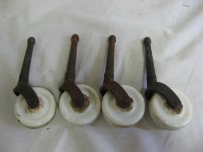 LOT of 4 ANTIQUE FURNITURE CASTER PORCELAIN WHEELS
