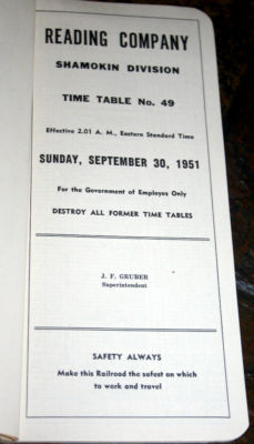 Title (ebay affiliate link): Reading Co. Shamokin Division Time Table #49, Sept. 30, 1951
