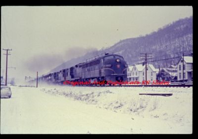 PRR-9826 F7-A Dupe Plastic Mt. RR Slide Leetsdale Pa. Mar-1965 Train/Snow