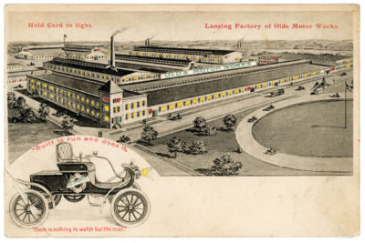 Hold to Light Advertising Postcard Lansing Factory Oldsmobile Motor Works pc57