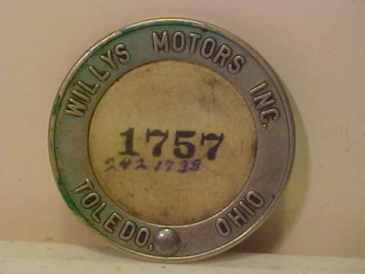 Title (ebay affiliate link): VINTAGE WILLYS MOTOR TOLEDO, OHIO EMPLOYEE BADGE # 1757