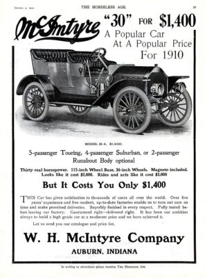 1910 McINTYRE Model M-4 (Auburn, IN) & F-A-L CAR ADS