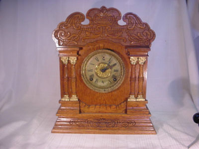 ANTIQUE SESSIONS OAK CABINET MANTLE CLOCK