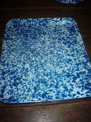 PRIMITIVE GRANITEWARE BLUE & WHITE SWIRL COOKIE SHEET