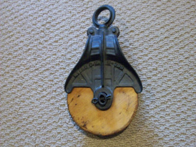 Title (ebay affiliate link): Antique Myers O.K. Barn Pulley H-298 6" Wood Pulley Excellent Condition