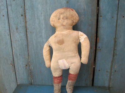 Title (ebay affiliate link): Early Fabric Cloth DOLL Dated on Foot Wonderful Old Repairs Primitive Find